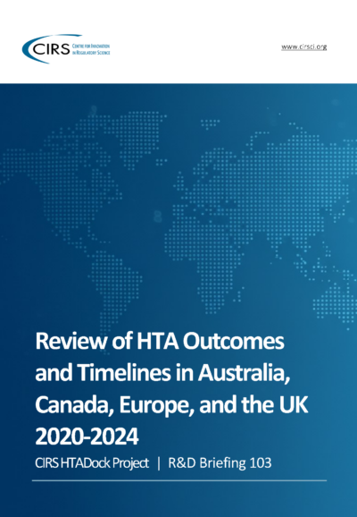This R&D Briefing presents findings from HTADock, an ongoing CIRS metrics study that collects publicly available data on new active substances (NASs) appraised by 12 HTA agencies in Australia (PBAC), Canada (CDA-AMC and INESSS), England (NICE), France (HAS), Germany (IQWiG), Ireland (NCPE), the Netherlands (ZIN), Poland (AOTMiT), Portugal (INFARMED), Scotland (SMC) and Sweden (TLV).