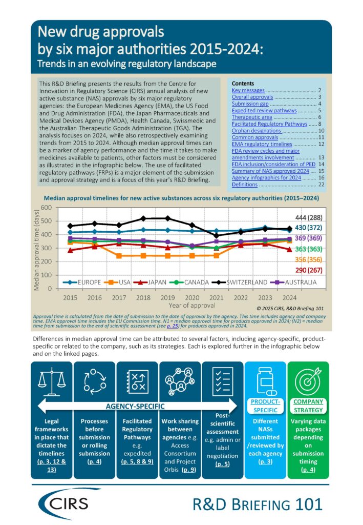 The results of these benchmarking studies have been endorsed and quoted by the agencies in their annual reports and conference presentations, and have also been used by other stakeholders. For example, regulatory benchmarking data from R&D Briefing 88 was cited by the European Commission in the Draghi Report on EU Competitiveness (Part B, p193) that looks at the challenges faced by the industry and companies in the European Union. The report’s findings are aiding the Commission in developing a new strategy for Europe’s sustainable prosperity and competitiveness.